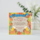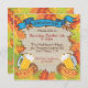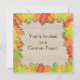 Folhas bonitas de outono rodeiam a informação da sua festa com este divertido convite de festas Oktoberfest com cerveja, brats e pretzels num fundo desbotado de madeira. Muito espaço para as informações da sua festa em ambos os lados. Ilustração desenhada à mão por McBooboo. com!