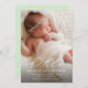 Compartilhe facilmente as suas notícias entusiasmantes com os entes queridos usando este anúncio de nascimento elegante. A frente deste anúncio de nascimento fotográfico mostra a palavra "olá" escrita em uma adorável caligrafia branca. O roteiro cobre uma grande foto de sangria de cheio do seu novo bebê. Abaixo da caligrafia, você pode adicionar seu nome, estatísticas de natalidade e seus nomes. Se você quiser adicionar fotos adicionais e/ou uma mensagem personalizada mais longa, a parte traseira será totalmente editável. Você pode até mesmo mudar a cor de fundo verde no verso.