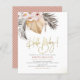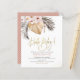 Um design rústico e elegante, com a inscrição em dourado moderna e um buquê floral de aquarela. O verde aparece no canto superior esquerdo e inclui folha de palma seca, grama-palma, frondes de palma, orquídeas e flores cor-de-rosa. "Hello Baby!" aparece abaixo na caligrafia com seus detalhes de eventos abaixo em uma simples tipografia. No canto inferior direito, há brilho de ouro falso para equilibrar o design e adicionar um pouco de brilho extra! Cartões invertidos a uma cor rosa empoeirada boêmica com um padrão de azulejo branco. Editável online, basta mudar o texto nas caixas de modelo fornecidas. Design seus próprios convites impressos e personalizados! Este tema verde do deserto é perfeito para primavera, verão e chás de outono. Como parte da seleção orçamentária no Zazzle, esta folha não é um tamanho de convite padrão ou qualidade de papel. Se quiser que este design num cartão de convite o encontre na nossa loja ou utilize o Zazzle Make Machine para o transferir para o produto da sua escolha. Sinta-se à vontade para me enviar mensagens para jogos de chá de fraldas, cartões de receita, cartões de agradecimento, placas, inserções ou quaisquer outras ideias personalizadas que você tenha - terei todo o prazer em ajudar!