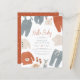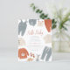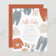Um belo e moderno convite ao chá de fraldas com "Hello Baby" na escrita de terracotta e os detalhes do seu chá em simples tipografia. Decorando a borda desta design, há roupas de bebê boho em um esquema neutro de cor azul pastel, creme e laranja ferrugem. As roupas incluem macacões, panfletos, calças, gorro, calçados de bebês, camisa e um suéter. Há também um dinossauro de madeira e um brinquedo de raposa. Convida ao contrário de um simples padrão de triângulo branco escandinavo contra um fundo laranja. Este armário tem tudo, então este convite é perfeito para primavera, verão, outono e bebês de inverno! "Como parte da seleção orçamentária no Zazzle, esta folha não é um tamanho de convite padrão nem qualidade de papel. Se quiser que este design num cartão de convite o encontre na nossa loja ou utilize o Zazzle Make Machine para o transferir para o produto da sua escolha. Sinta-se à vontade para me contactar se tiver alguma pergunta - terei todo o prazer em ajudar. Visite nossa loja para mais designs!