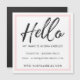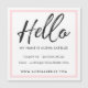 Na moda e cartão de visita de introdução de tendências apresentando "Hello" em uma tipografia de script de pincel preto na moda com uma simples estrutura de borda rosa-pincel. Apresente-se com "olá, meu nome é" e personalize com seu nome. Projetado em um layout simples e limpo com informações de contato. Você pode personalizar a fonte, a cor e o layout de acordo com sua preferência pessoal.