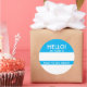 Olá, Nome de etiqueta Azul, com Fale Comigo Sobre