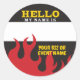 nome de etiqueta "Hello My Name Is" com fundo preto, chamas vermelhas, espaço para hóspedes ou chefs escreverem seus nomes e linha de texto editável (ou removível) para seu negócio ou nome de evento. Excelente para qualquer cozinheiro de churrasco da festa de churrasco.