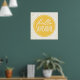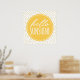 Traga um pouco de sol extra para a decoração de casa com este poster feliz "olá, sol". Perfeito para um escritório, berçário ou quarto de crianças. O design apresenta tipografia estilo escrita à mão branca em um círculo laranja-amarelo, com um fundo de pontos polka dourados de folha falsa. (Nota: A aparência dourada do padrão de pontos é obtida com uma imagem impressa e não é tinta metálica ou folha.)
