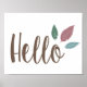 Pena em cor rosa, azul, verde poster de boas vindas. Olá, poster de caligrafia.