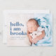 Se você ama estilo simples, este cartão de anúncio de nascimento é adequado para você. A placa apresenta um design elegante que permite que você coloque espaço para realçar o pequeno precioso. À esquerda, o texto do bloco grande destaca o nome lindamente escrito com script para corresponder à sua foto. Anuncie o nascimento do seu doce bebê com esta peça macia e eterno.