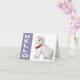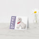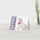 Os cartões de saudação são uma forma excelente de mostrar apreço, ou de deixar amigos e familiares saberem o quão especiais eles são quando, às vezes, as palavras ficam sem palavras. Este bonitinho de noteca apresenta um feliz cachorro malvado branco parado em um fundo branco nítido. A saudação de saudação é realçada sobre um fundo texturizado roxo.