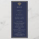 Set on a deep navy blue background with subtle gold accents and elegant serif typography, this flat menu adds a calm, luxurious presence to your tablescape while presenting your menu in a clear and sophisticated way.