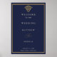 Set on a deep navy blue background with refined faux gold graphic accents and sophisticated serif typography, this vertical poster creates a calm, luxurious visual statement suitable for wedding entrances, reception spaces, or framed home keepsakes.