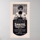 Just look at those gleaming white teeth! Make brushing an enthusiastic habit with Sanitol Tooth Powder or Paste! A lovely bathroom poster. Note: enlarging this image may result in a poor quality print.