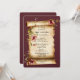A vintage burgundy colored background covers the back and front of this invitation.