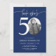 Celebre seu aniversário de 50 anos com estilo de eterno usando este convite de 50 pessoas com marinho azul! Apresentando um design moderno e elegante, este convite azul é perfeito para quem prefere a simplicidade com um toque de elegância. Totalmente personalizável, você pode adicionar facilmente os detalhes do seu partido para criar um convite pessoal e sofisticado que dá o tom para uma comemoração de na moda 50 anos.