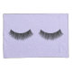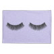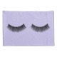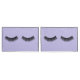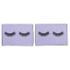 Par de pestanas pretas em pontos de pinos brancos e um fundo púrpura pastel.
