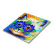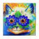 Azulejo com a pintura animal de Louis Wain de olhos de flores de gato (1860-1939). Um gato arco-íris sorri muito. Flores azuis cobrir seus olhos. Um presente maravilhoso para amantes de gatos e arte inglesa.