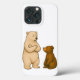 Um pequeno urso olha para o seu guardião, olhos cheios de sonhos. Sua postura conta uma história silenciosa de crescimento, esperança e mentoria na natureza.