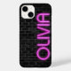 Nome OLIVIA em luzes cor-de-rosa brilhantes de néon-marquee na parede de tijolos da cidade. Entre em contato comigo para obter uma alteração de nome. liveslow@charter.net