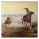 Charles (CM) Russell, o "cowboy artist", criou mais de 2.000 pinturas de cowboys, indianos e paisagens estabelecidas nos Estados Unidos Ocidentais. Ele viveu e trabalhou entre os cowboys e a tribo Blood Indian em seus anos mais novos. Esta pintura chama-se "On the Pond" e retrata um vaqueiro em cavalo, lassando um boi longhorn escapado.