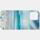 Lindas ondas de oceano azul em uma praia arenosa com vidro azul e lacrimogêneo e céus azuis turvos.
