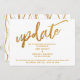 A distinção deste conjunto arrojado e simples se deve à fonte manuscrita moderna e casual usada para frases de destaque e ao padrão de ondas soltas colocado sobre o fundo. As ondas evocam a ideia de serpentinas comemorativas. Nesta peça, a fonte manuscrita foi usada para criar um gráfico que representa a palavra "atualização". Tanto este texto de cabeçalho quanto o padrão de fundo foram adornados com um padrão de folha de ouro falso. Use os campos do modelo para adicionar seus detalhes pessoais e tornar este design festivo seu. O fundo branco pode ser alterado para qualquer cor que você preferir. Entre em contato para qualquer solicitação especial ou para assistência na personalização. // 100 //