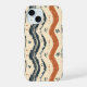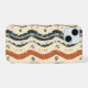 Este trabalho de arte apresenta um padrão rústico e desenhado à mão de linhas onduladas e simples motivos florais. O design usa uma paleta colorida quente e suja de terracota e azul profundo contra um fundo creme, evocando uma sensação de movimento natural e orgânico. As linhas e formas texturizadas irregulares dão ao padrão uma sensação artesanal e artesanal, enquanto o fluxo ritmico das ondas cria um efeito visual calmante e dinâmico. Os elementos florais e geométricos dispersos acrescentam detalhes sutis e charme à composição global.