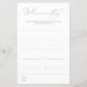 Torne o seu chá de casamento uma grande oportunidade com a nossa coleção de jogos divertidos e interativos. Com seu elegante design branco, esse jogo exude sofisticação e estilo. Reúna seus entes queridos, divida em equipes, e deixe que a competição amigável comece. Projetado para coordenar com a Coleção de Convite para Casamento "Chloe". Para alterar os detalhes, clique em "Detalhes". Para mover o texto ou alterar o tamanho, a fonte ou a cor, clique em "Editar usando a Ferramenta de Design". Exibir o link de coleção nesta página para ver todos os itens correspondentes nesta bela design