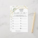 Onde eles estavam? Jogos das versões inglesa e espanhola incluídos (frente e verso). Adicione Bride & Groom para ser o Nome no modelo para as versões em inglês e espanhol. Para obter mais personalização (alterar texto, adicionar ou excluir o número de fotos, cor da fonte, estilo da fonte ), clique em personalizar, role para baixo e clique no link "clicar para personalizar ainda mais". COMO REPRODUZIR: Exibe fotos da Noiva e do Groom em diferentes locais e as numera. Os convidados anotam o palpite de cada foto e a pessoa com as respostas mais corretas ganha!