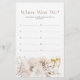 (Escolha o acabamento de papel MATT - NÃO semi-brilho - para escrever.) Adicione uma atividade divertida e memorável ao seu chá de noiva com o jogo 'Onde Estávamos?', onde os convidados adivinham os locais das fotos com a noiva e o noivo. Este jogo, adornado com flores delicadas em aquarela e pérolas elegantes, traz risadas e alegria à sua celebração, complementando perfeitamente a Coleção Chá de Noiva Pérolas Elegantes e Prosecco.