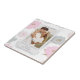 Azulejos Decorativos Casais Românticos Personalizados Onde Tudo Começou apresentam um floral rosa abstrato moderno com acentos de brilho dourado. No centro, adicione sua foto favorita e seu texto de como você conheceu. Fácil DIY (Faça Você Mesmo) editando o texto nas caixas de texto fornecidas. Criado por ©Evco Studio www.zazzle.com/store/evcostudio