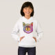 The hoodie has a one yellow eyed cat on the front and black, the cat had a few brilliant colors that make this sweat shirt stand out.