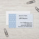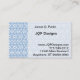 O padrão azul (feito de hexágonos, bares, triângulos e círculos) é multiplicado por toda a carta. A margem vertical esquerda é a cor escura, o restante do padrão é um cenário mais claro para as informações comerciais pertinentes de Nome, Negócios, números de contato (todos para serem personalizados).