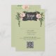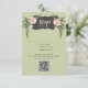 Este cartão de resposta de deserto florescente apresenta um código QR que você pode vincular ao seu site de casamento para facilitar a resposta dos seus convidados. Todos os detalhes importantes do casamento podem ser editados. As cores incluem verde, rosa, branco e preto. As costas têm um endereço artístico que realmente faz uma declaração. Há uma versão deste cartão com opções de menu, se você precisar.