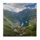 Uma vista a Geiranger e a Geirangerfjorden de Flydalsjuvet na municipalidade de Stranda, og Romsdal de Møre, Noruega em 2013 junho.