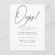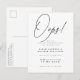 Ops! Vivemos em tempos interessantes! Não congele quando as coisas saem dos trilhos. É hora de mudar de direção! Você precisará de um tempo para se recompor, se adaptar e encontrar novas maneiras de remarcar e talvez até reinventar aquele evento especial. Deixe-nos ajudá-lo! Esses cartões clássicos de adiamento de evento em preto e branco incluem uma mensagem de texto fixa em uma fonte de letra cursiva elegante com uma fonte moderna sem serifa para a sua mensagem. Perfeitos para qualquer ocasião que você precise adiar ou remarcar. Deixe seus convidados saberem que você precisa adiar o evento sem perder a compostura com esse design clássico atemporal. Não fique deprimido. Agora você tem tempo para fazer sua nova celebração ainda mais como sempre sonhou que fosse! Lembre-se: eventos imprevistos acontecem e seus convidados entenderão ;-) Se precisar de ajuda, entre em contato conosco pelo chat do Zazzle e ficaremos felizes em ajudá-lo!