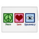 Um cartão de Natal fofo optometrista, com um sinal de paz, coração e um olho azul para um médico de visão e visão. Optometria do Amor de Paz presente.