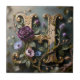 This design is special for its rich, contrasting palette of gold, deep purple, and teal. The letter 'H' is characterized by dimensional Baroque scrollwork and a detailed cracked antique finish. The lavish arrangement of velvet purple roses and assorted poppies intertwining with mossy branches creates a striking, personalized piece of heirloom-quality botanical art.
