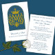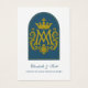 Este cartão de oração de casamento católico reverente apresenta um monograma mariano dourado radiante coroado em glória e emoldurado dentro de um arco azul mariano. A frente homenageia Nossa Senhora, cuja intercessão abençoou o Sacramento do Matrimônio. No interior, uma solene bênção nupcial reza pela unidade, paz e santidade do casal, inspirada na Sagrada Família. Um precioso souvenir para casamentos enraizados na beleza da tradição católica e devoção à Virgem Maria.