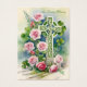 Lembre-se dos seus entes queridos em oração com este belo cartão de oração do funeral. Na frente está uma imagem vintage da Cruz Irlandesa Celta com rosas cor-de-rosa. Todo texto e fontes podem ser modificados.