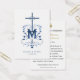 Apresentando uma bela imagem católica tradicional de uma bela Cruz Marinha azul com alianças de casamento. A Cruz Marian, também conhecida como Cruz Medal Miraculosa, é um símbolo associado à Bênção Virgem Maria no Catolicismo. Esta cruz incorpora elementos que estão muitas vezes ligados ao significado da Virgem Maria na tradição cristã. A cruz em si é uma representação da fé cristã, enfatizando o papel central de Jesus Cristo. O aditamento de elementos marcianos distingue a Cruz Marian. Normalmente, a parte inferior da cruz apresenta um bar ou um oval, simbolizando a Medalha Miraculosa. A Medalha Miraculosa é uma medalha devocional que se originou de uma aparição da Virgem Maria à Santo Catherine Labouré no século XIX. Neste contexto, a Cruz Marian serve como um lembrete visual do papel de Mary na narrativa cristã e na devoção a ela associada. É um símbolo de fé, proteção, e a intercessão da Bênção Virgem Maria Uma oração também está nas costas para a noiva e o noivo.