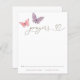 Peça aos seus chás que encham essas preces adoráveis por cartões de bebê no seu chá de fraldas. Apresentando uma ilustração de borboletas roxas e cor-de-rosa para combinar com a nossa coleção de chás de fraldas de Borboletas Deseja. Personalize o nome da Mamãe a ser e a data do chá.