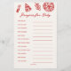 Adicione diversão e risos ao seu chá de fraldas com estas Orações com o tema da pizza italiana para cartões de bebê! Projetadas com sotaques vermelhos, verdes e rústicos de pizza compre, estas cartas têm um talento italiano encantador, perfeito para combinar a decoração da sua festa de pizza. Os convidados podem adivinhar se as declarações estão acima ou abaixo do número real, criando uma atividade viva e interativa. Personalize para o seu evento e coordene-se com a coleção de chás de fraldas de pizza italiana de cheio para uma aparência coesa.