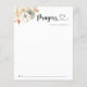 A placa de atividade do chá de fraldas apresenta a cor d'água folhagem de outono e abóboras. O cartão de orações incita os hóspedes a compartilhar orações para que os pais se preparem para o bebê.