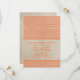 Moderno com uma reviravolta vintage é este Chic Chevron Salvar o Anúncio de Data. Este design apresenta um plano de fundo de aparência de papel antigo e um padrão de gesso zigzag em laranja. Fácil de personalizar, simplesmente adicione seus detalhes de casamento. Clique em "Personalizar" para encontrar mais opções de personalização.