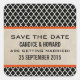 Quatrefoil Chic Elegante e moderno Salve os adesivos Data com um plano de fundo morcano de tendência, um papel vintage com o fundo e um par de listras laranja finas. Estes na moda salvam os adesivos de data são fáceis de personalizar com seus detalhes de casamento. Clique em "Personalizar" para encontrar mais opções de personalização.