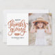 Envie os votos de boas-vindas e saudações para a família e amigos com este cartão com fotos. Apresenta caligrafia moderna e folhagem simples. Personalize adicionando fotos e nomes.