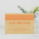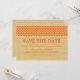 Moderna e moderna Rustic Chevron Salve o Anúncio de Data com uma arte digital impressa em fundo de madeira e um padrão zag de faixas laranja-chevron. Esta design é perfeita para anunciar um casamento rústico mas elegante. Fácil de personalizar, simplesmente adicione seus detalhes de casamento. Clique em "Personalizar" para encontrar mais opções de personalização.