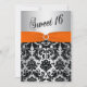 Este elegante e moderno convite 16, doce, cor de laranja, prata e negro, tem uma fita de laranja IMPRESSA e um broche de joias. Pode ser personalizado para outras celebrações, como para uma Quinceanera, Bat Mitzvah, ou qualquer outro evento que precise de um convite clássico. Se você precisar de algum item correspondente ou se quiser que ele apareça em outra combinação de cores ou se estiver formatado para outro evento, envie um email para niteowlstudio@gmail.com com sua solicitação.