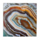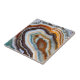 Esta é uma fatia multicolorida branca, preta, azul, lacrimogênea, cinza, laranja, marrom e terracota de close-up do gode agate.