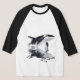 Camiseta Básica, Mangas Raglan 3/4, Branco/Preto, Adulto M