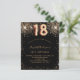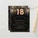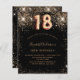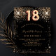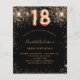 Um convite moderno, na moda e glamouroso para a 18ª festa de aniversário de uma menina. Um fundo preto decorado com falso brilho. O nome é escrito com um moderno ouro escrito com letras no estilo à mão. Personalize e adicione os detalhes da sua festa. O número 18 é escrito com uma fonte de estilo balão, script.