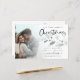 Cartão de Férias de Natal de 1rua casado. Um cartão plano de 5,5 x 8,5" para as suas saudações festivas em um estoque de cartão SEMI GLOSS 110 lb brilhante (semelhante à espessura de um cartão postal). OBSERVE: O envelope fornecido com este cartão é maior que o cartão a 6,75" x 9". Celebre a época especial do seu primeiro Natal, como o senhor deputado e a senhora deputada, juntamente com os seus desejos festivos! Fácil de personalizar o texto e substituir a foto de exemplo por sua. A folhagem de inverno, colorida e gelada, está em cada lado.